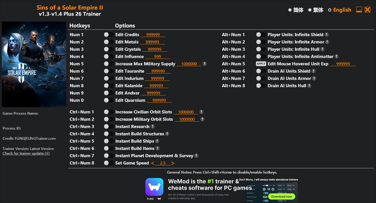Similar Trainers Sins of a Solar Empire II Trainer +26 v1.4 {FLiNG}: