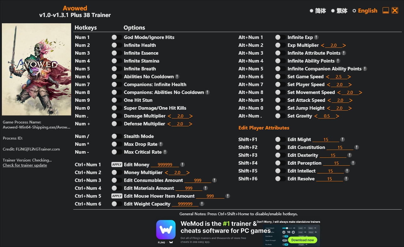 Similar Trainers Avowed Trainer +38 v1.3.1 {FLiNG}: