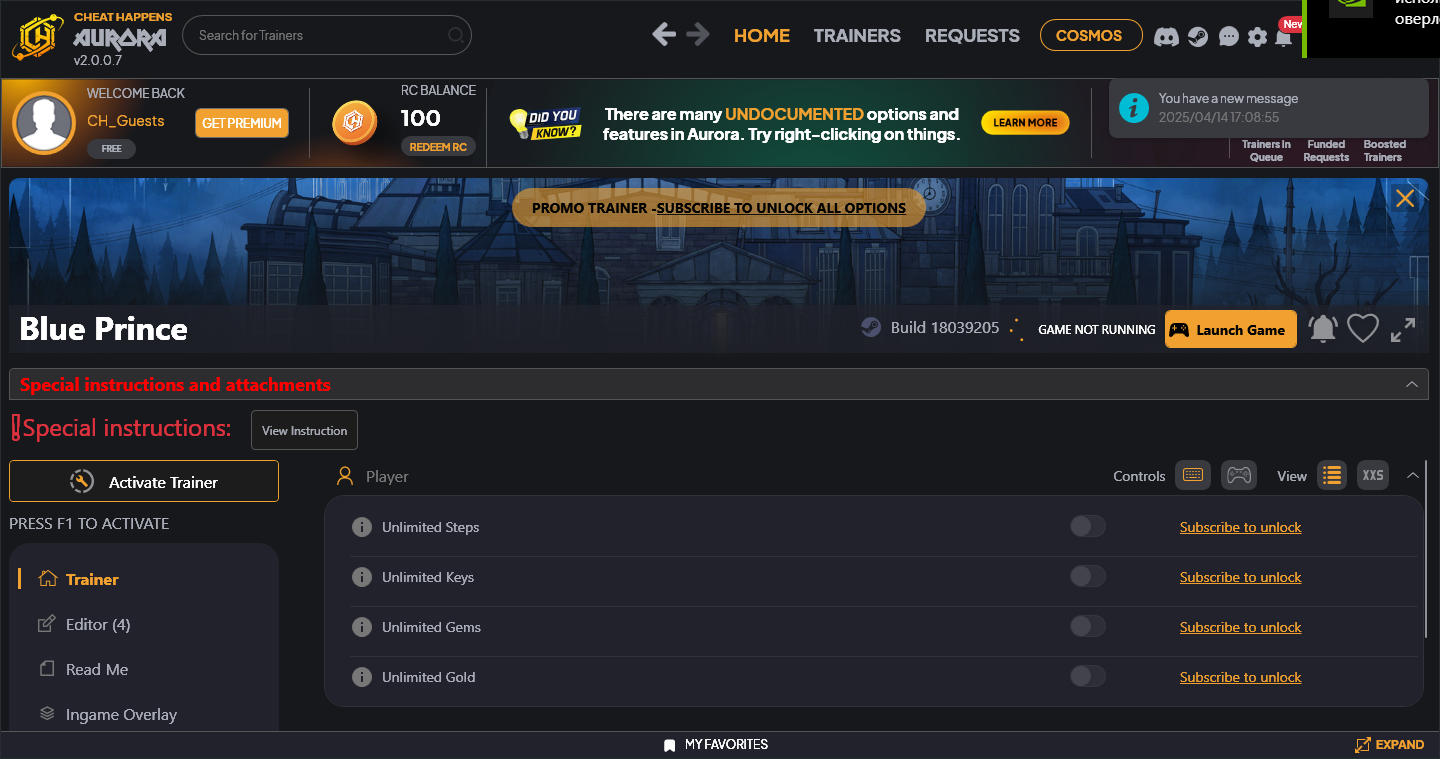 Virus Scan: This trainer has been scanned and is virus and adware free. Some trainers may set off generic or heuristic notifications with certain antivirus or firewall software.