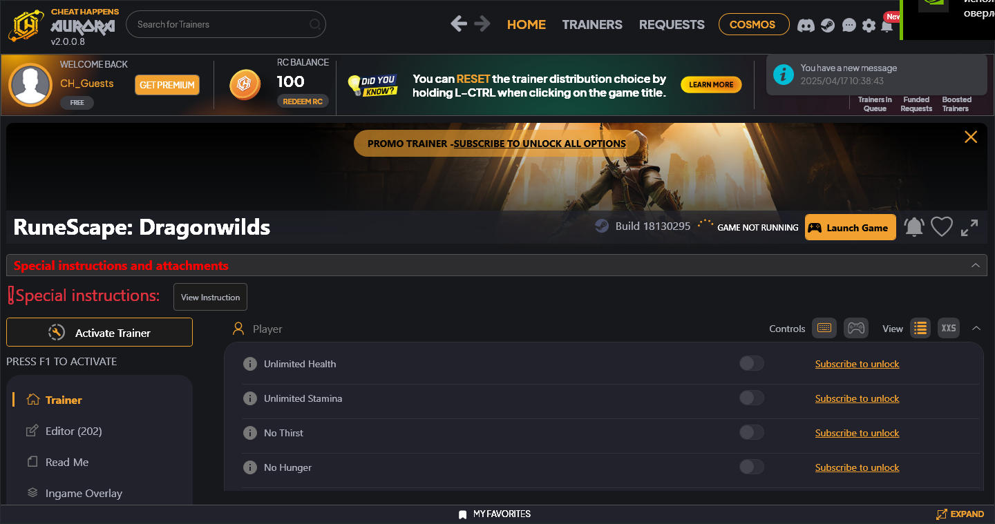 Similar Trainers RuneScape: Dragonwilds Trainer +242 v18130295 (Cheat Happens):