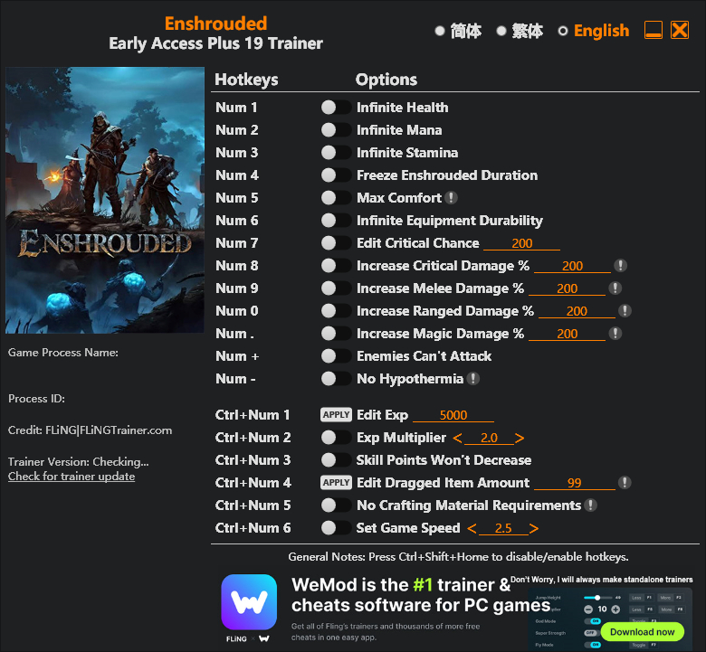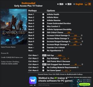 Similar Trainers Enshrouded Trainer +19 Early Access 2025.05.16 {FLiNG}: