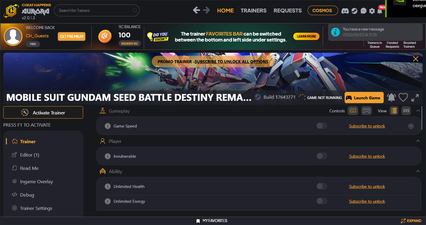 Similar Trainers Gundam Seed Battle Destiny Trainer +27 v17643771 (Cheat Happens):