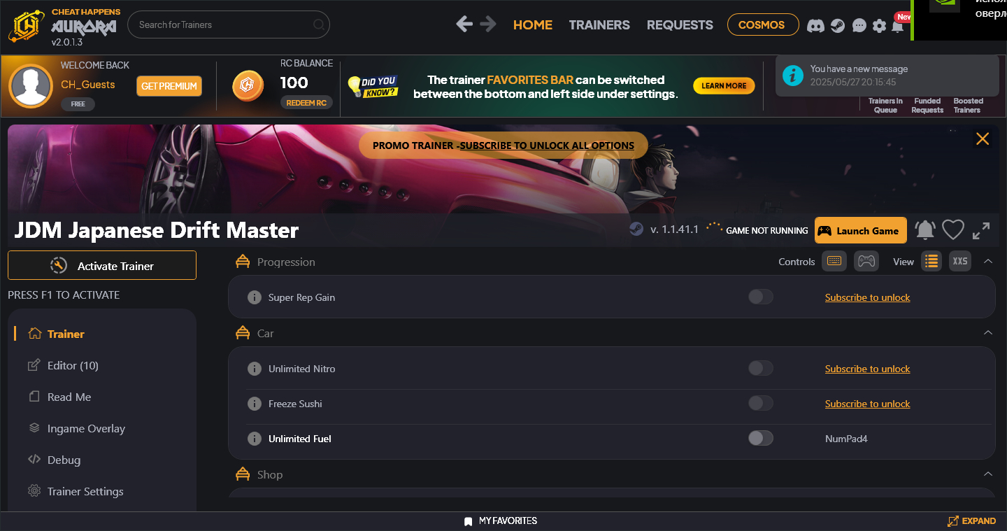 Similar Trainers JDM: Japanese Drift Master Trainer +16 v1.1.41.1 (Cheat Happens):