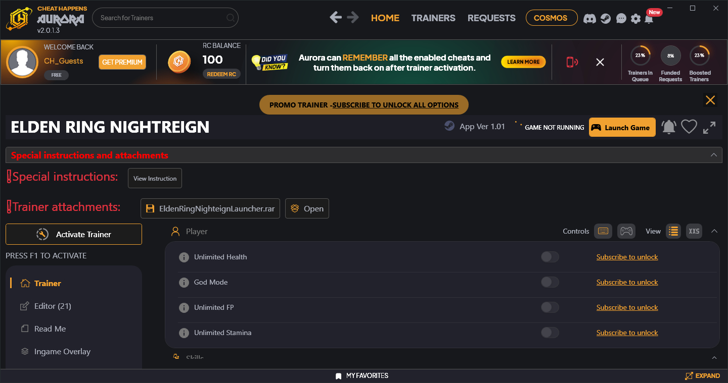 NotesThis game comes with an anti cheat that prevents mods and trainers. To use our trainer, you will need to run the game using our LAUNCHER.