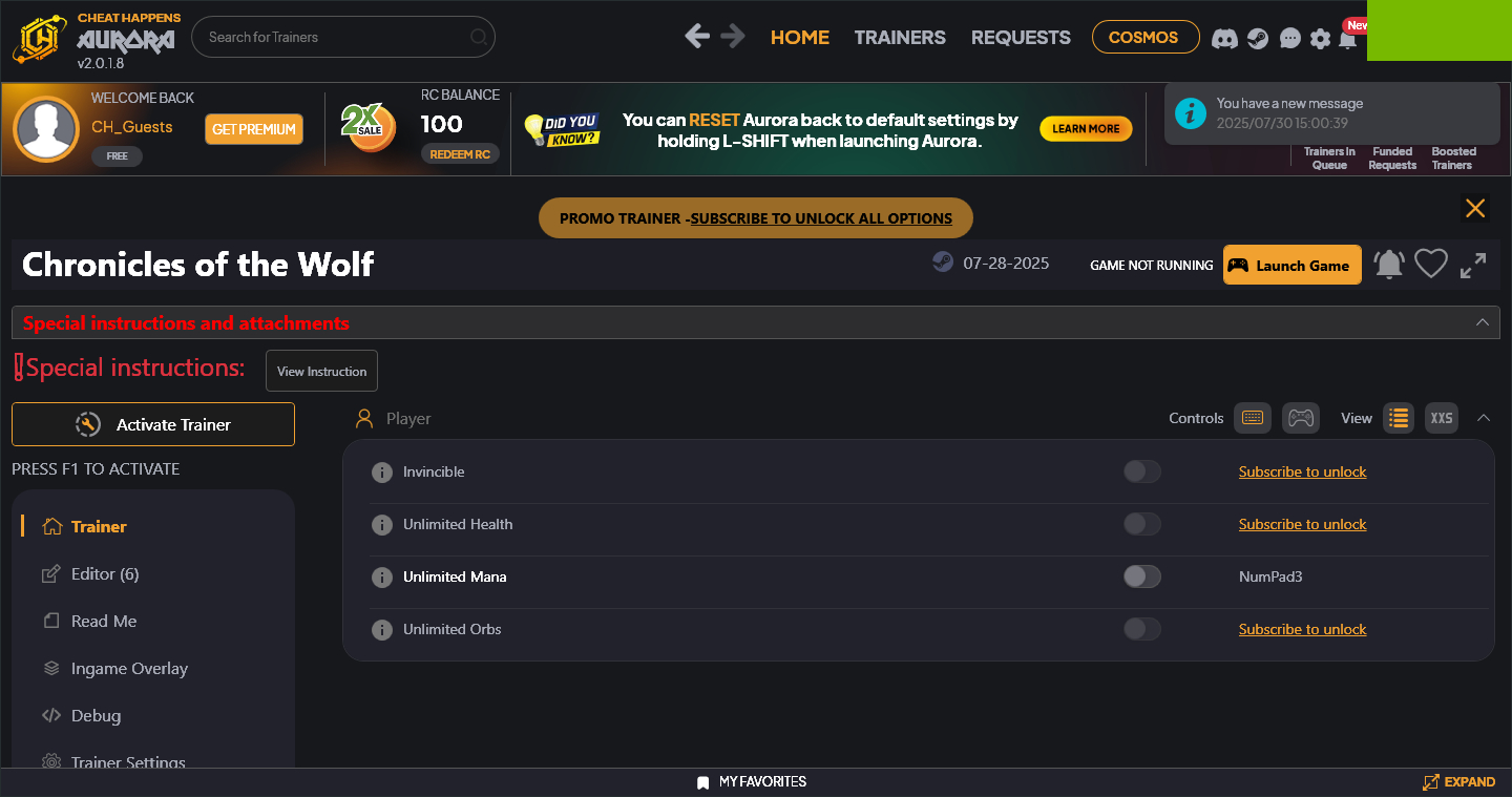 Similar Trainers Chronicles of the Wolf Trainer +10 ORIGINAL (Cheat Happens):