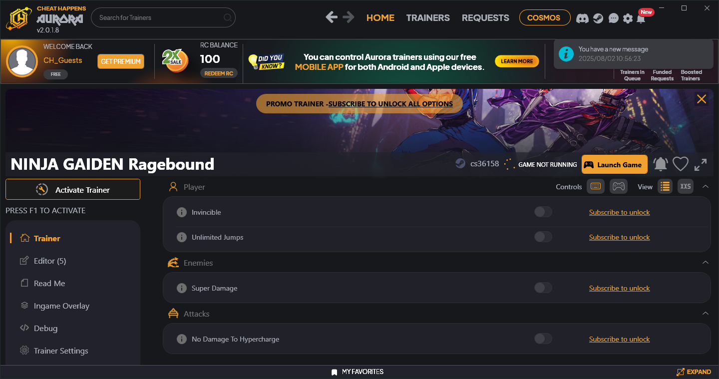 Virus Scan: This trainer has been scanned and is virus and adware free. Some trainers may set off generic or heuristic notifications with certain antivirus or firewall software.
