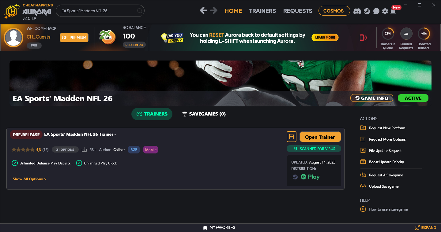 Similar Trainers EA Sports´ Madden NFL 26 Trainer +21 ORIGINAL (Cheat Happens):