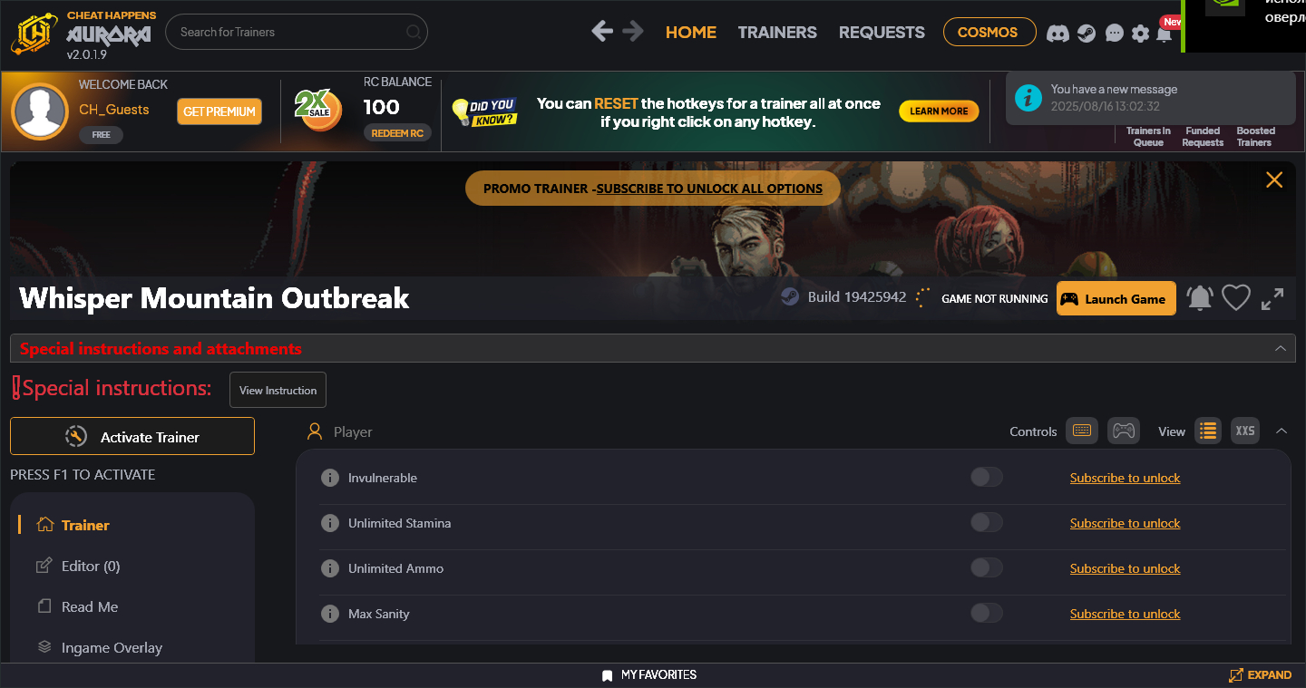 Similar Trainers Whisper Mountain Outbreak Trainer +7 v19425942 (Cheat Happens):