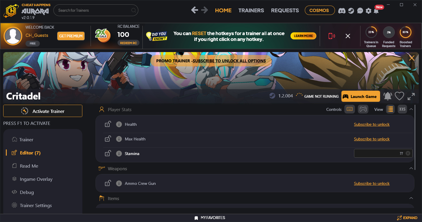 Similar Trainers Critadel Trainer +7 v1.2.004 (Cheat Happens):