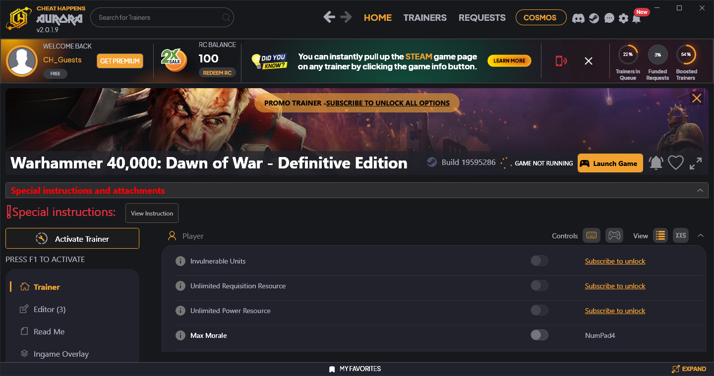 Similar Trainers Warhammer 40,000: Dawn of War - Definitive Edition Trainer +11 v19595286 (Cheat Happens):