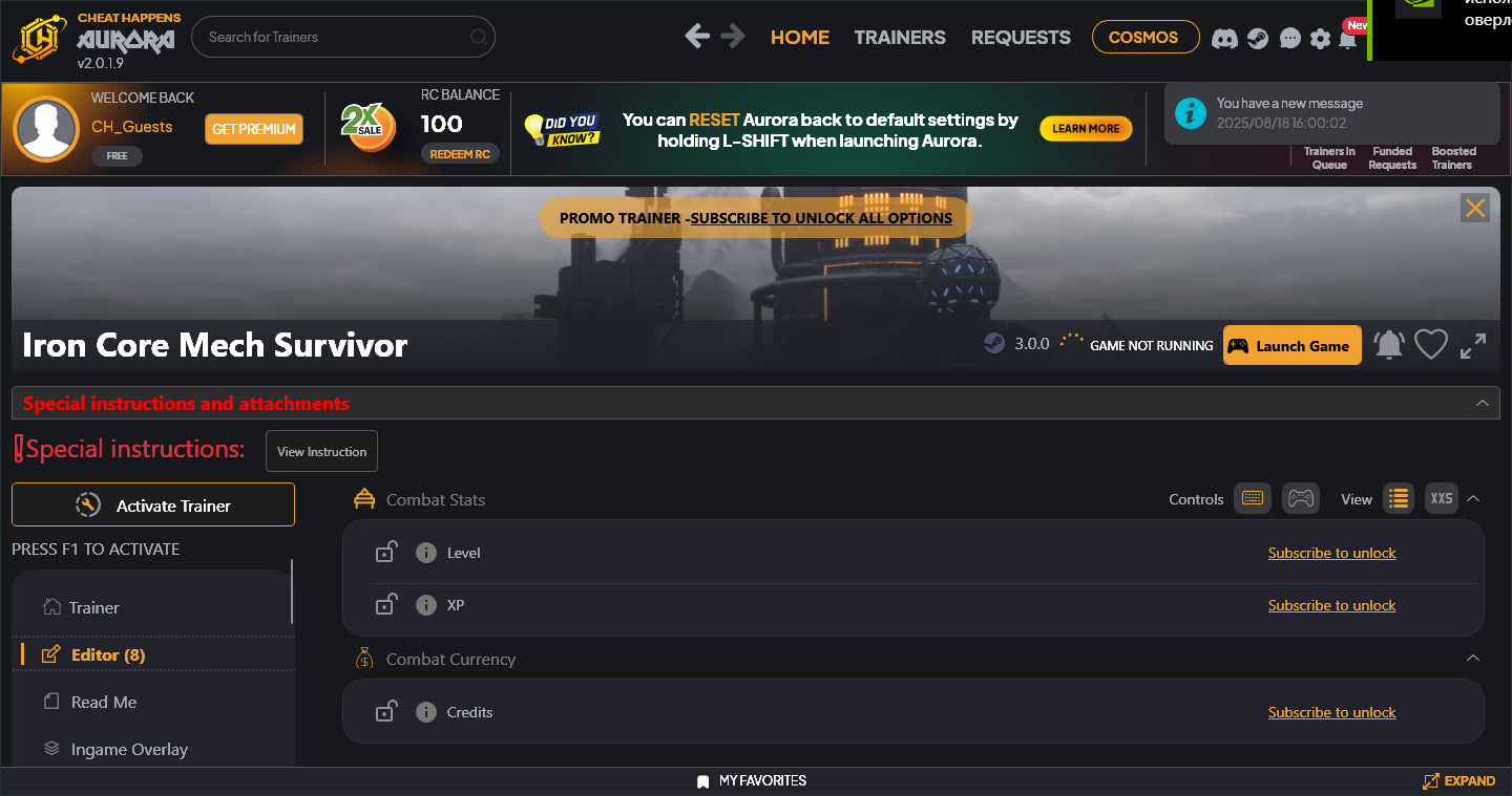 Similar Trainers Iron Core: Mech Survivor Trainer +17 v3.0.0 (Cheat Happens):