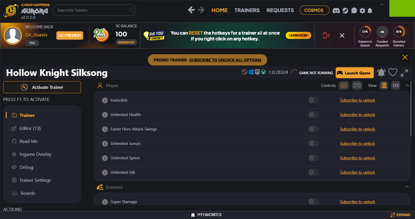Similar Trainers Hollow Knight: Silksong Trainer +20 v1.0.28324 (Cheat Happens):