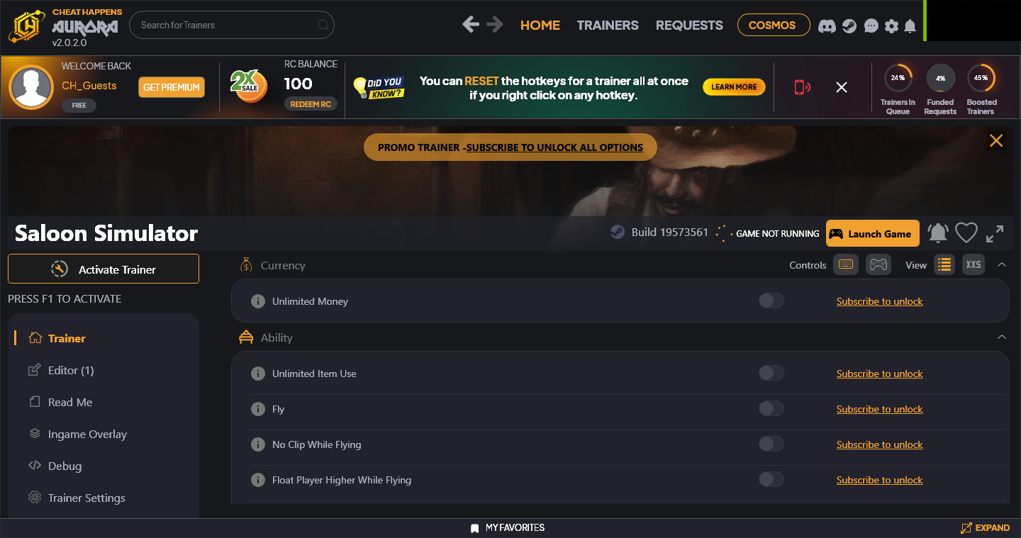 Similar Trainers Saloon Simulator Trainer +35 v19573561 (Cheat Happens):