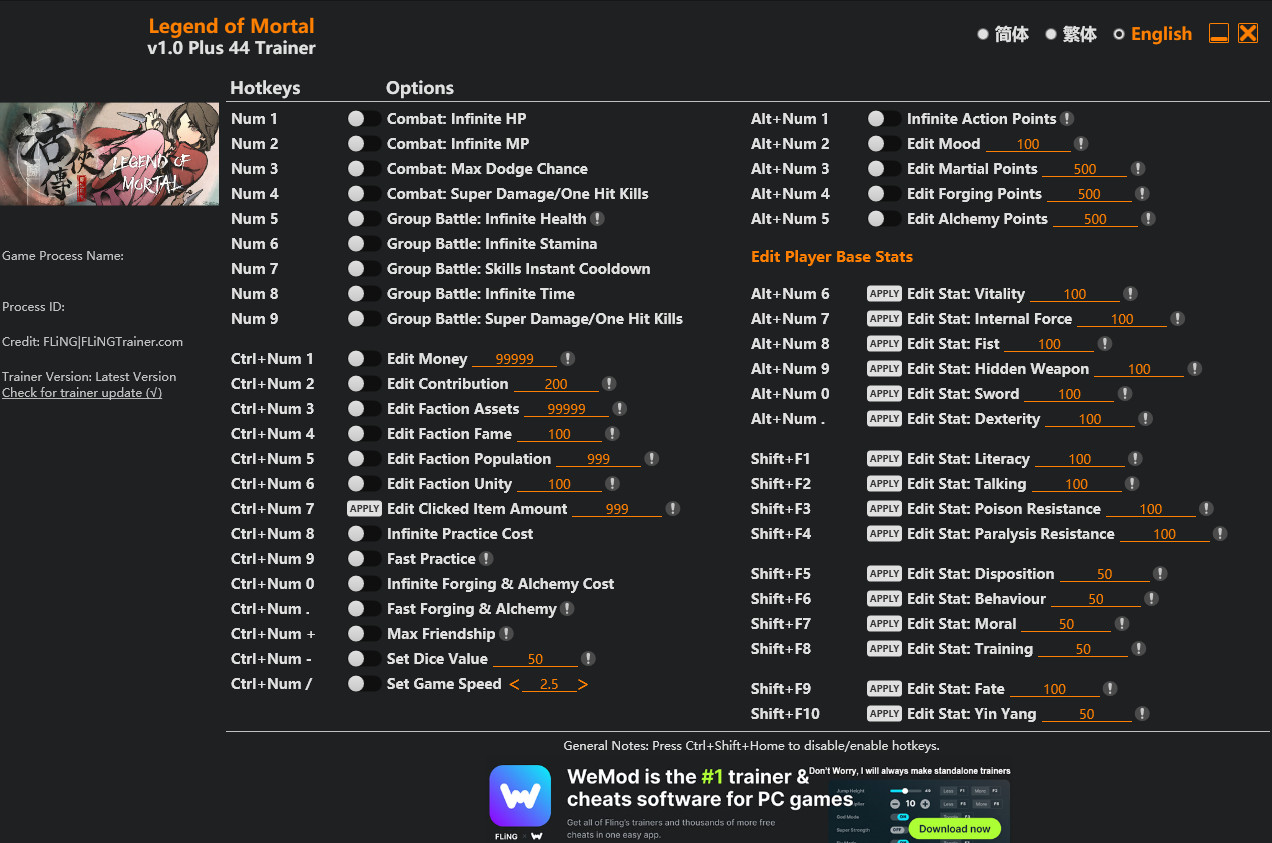 Similar Trainers Legend of Mortal Trainer +44 v1.0 2025.09.17 {FLiNG}: