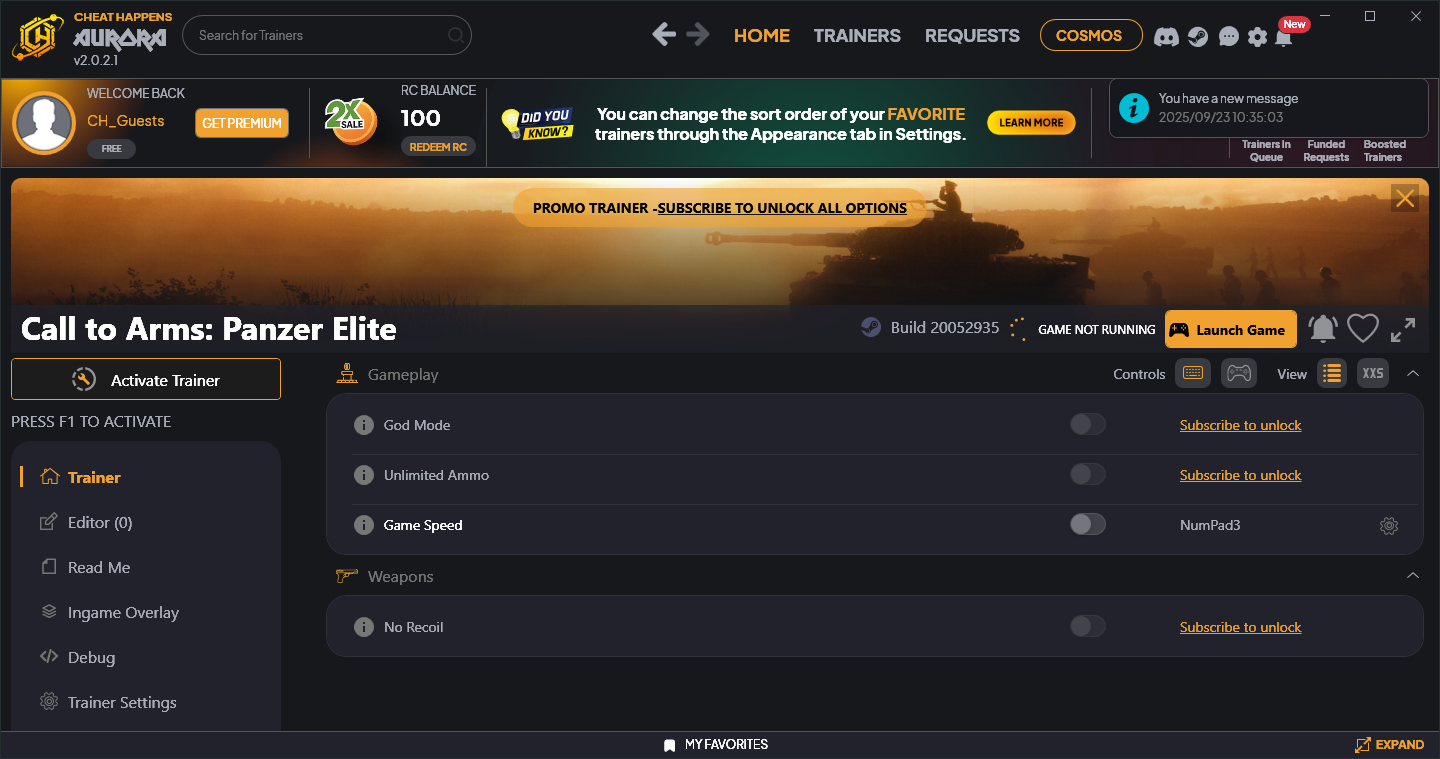 Similar Trainers Call to Arms: Panzer Elite Trainer +4 v20052935 (Cheat Happens):