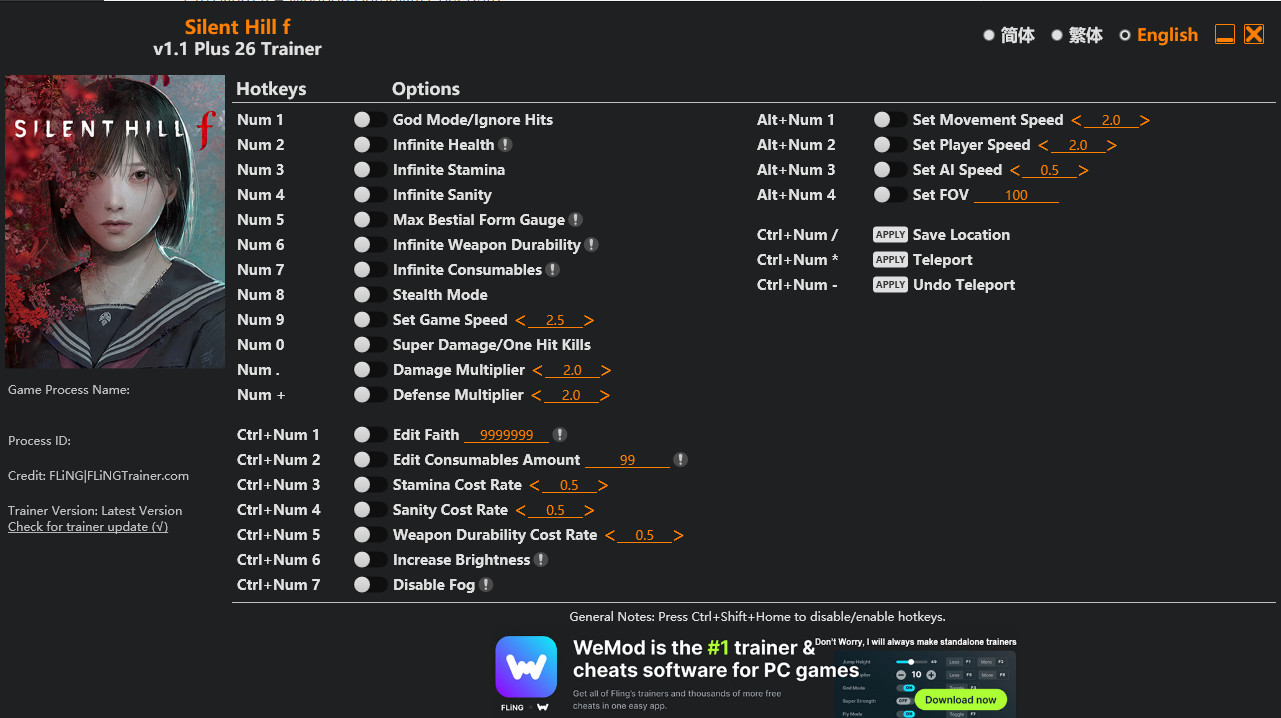 Similar Trainers Silent Hill f Trainer +26 v1.1 {FLiNG}: