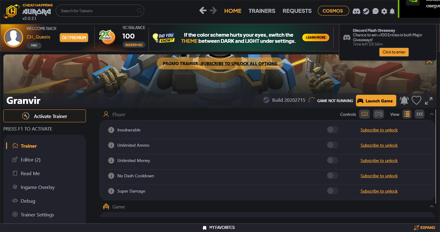 Similar Trainers Granvir Trainer +8 v20202715 (Cheat Happens):