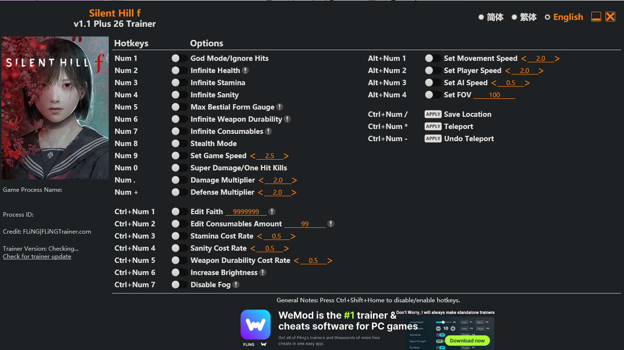Similar Trainers Silent Hill f Trainer +26 v2025.09.30 {FLiNG}: