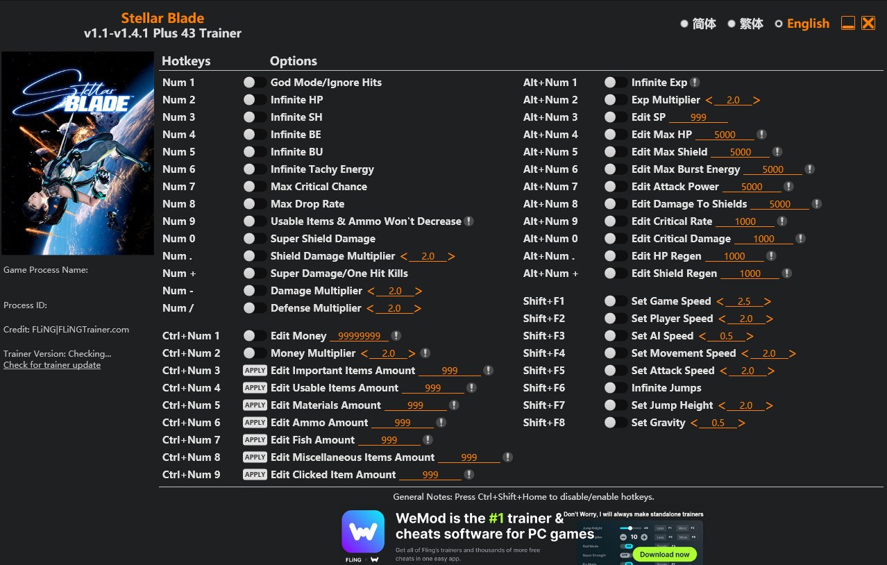 Similar Trainers Stellar Blade Trainer +43 v1.4.1 {FLiNG}: