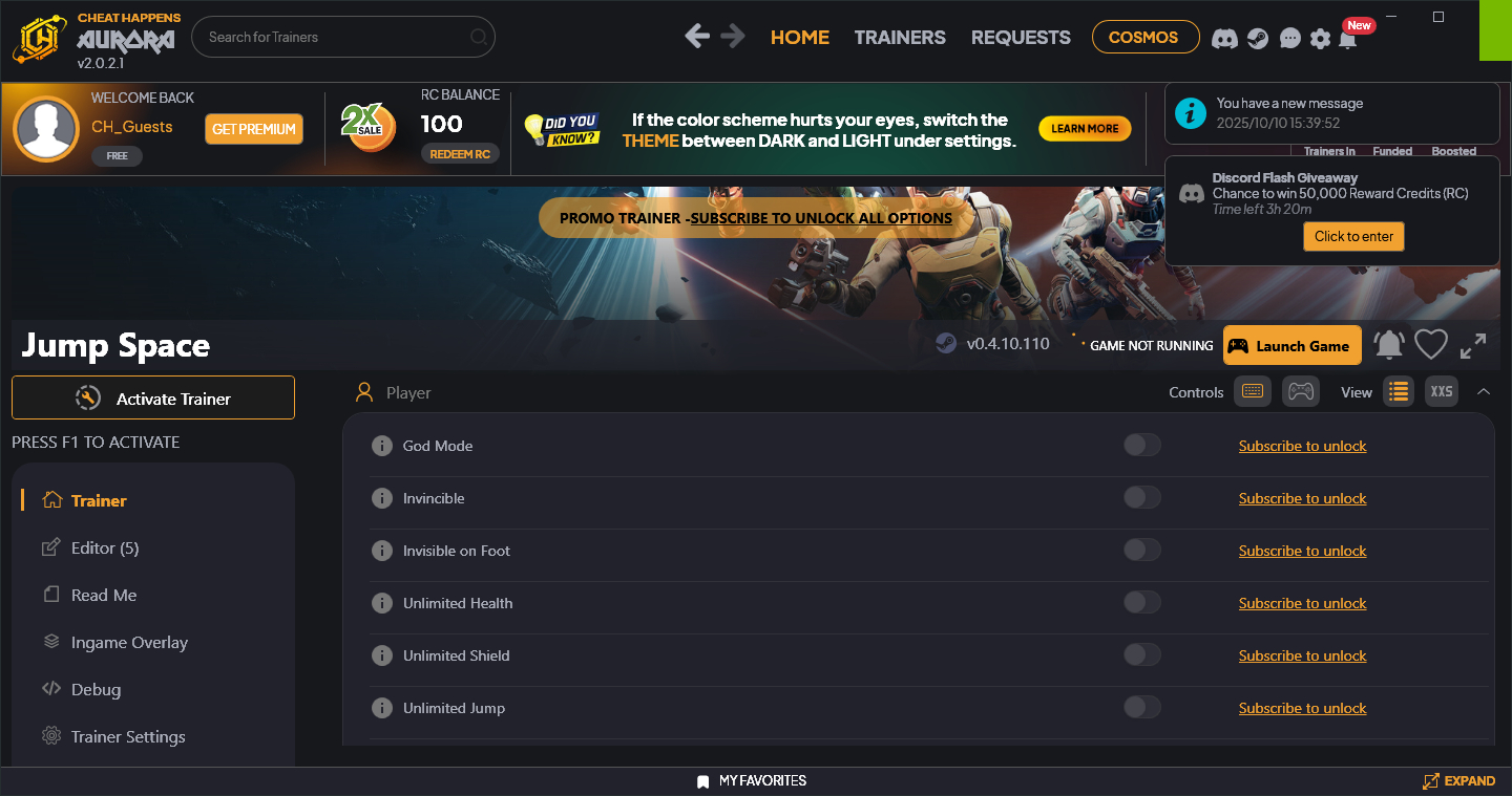 Similar Trainers Jump Space Trainer +20 v0.4.10.110 (Cheat Happens):