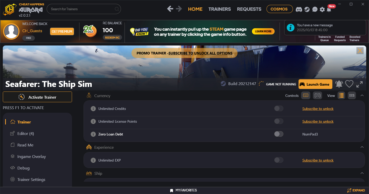 Similar Trainers Seafarer: The Ship Sim Trainer +12 v20212147 (Cheat Happens):