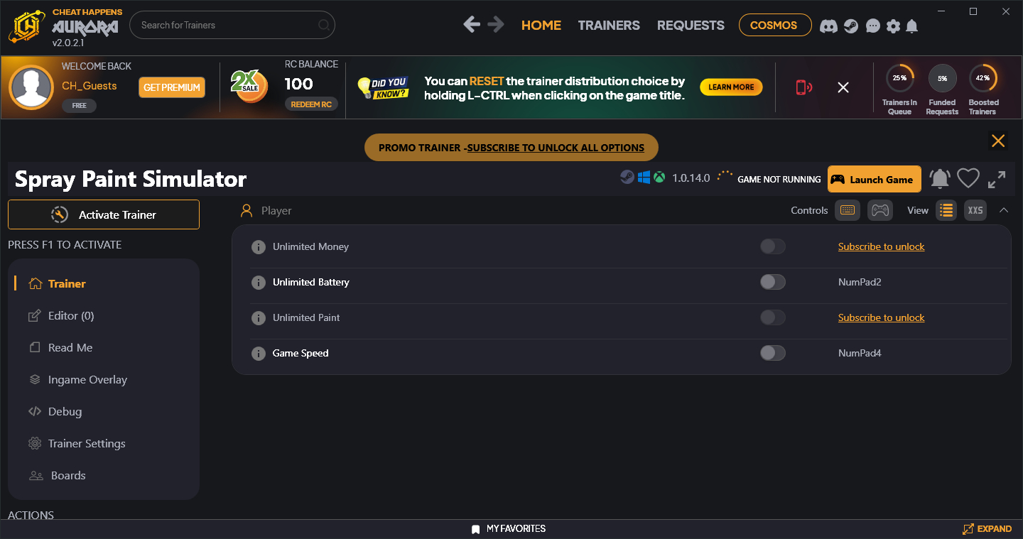 Similar Trainers Spray Paint Simulator Trainer +4 v1.0.14.0 (Cheat Happens):