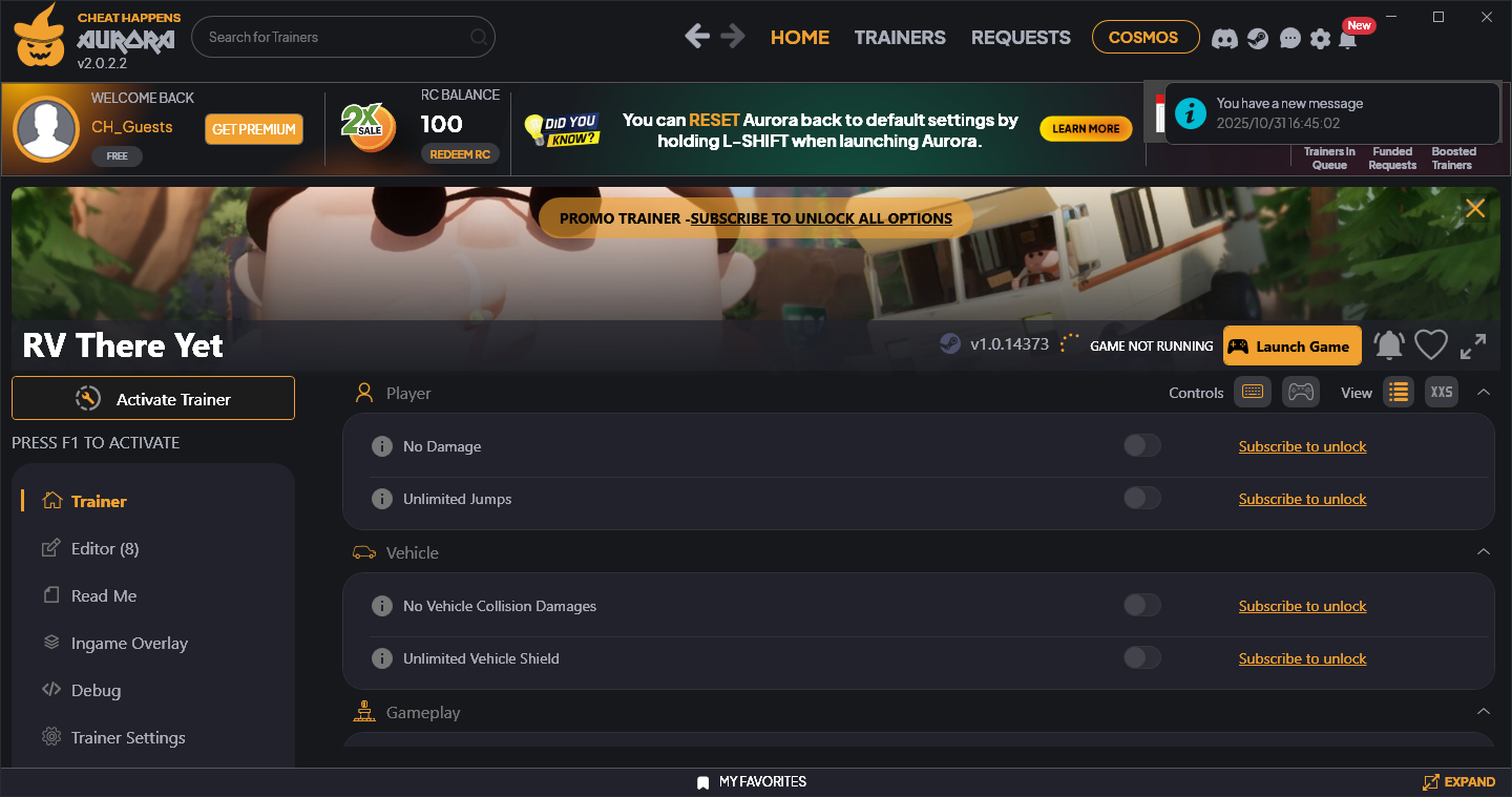 Similar Trainers RV There Yet? Trainer +13 v1.0.14373 (Cheat Happens):