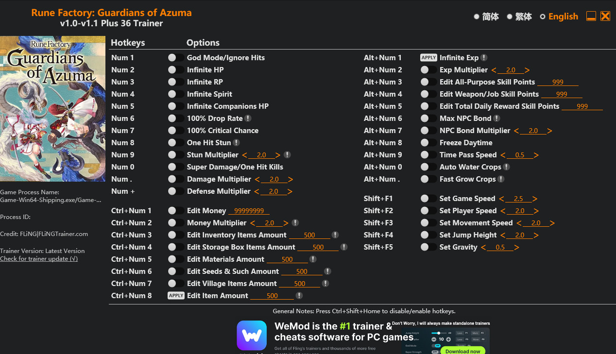 Similar Trainers Rune Factory: Guardians of Azuma Trainer +36 v1.1 {FLiNG}: