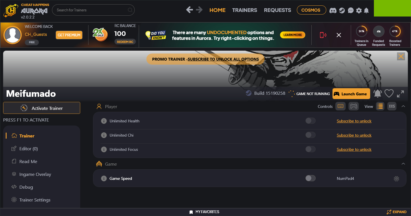 Similar Trainers Meifumado Trainer +4 v15190258 (Cheat Happens):