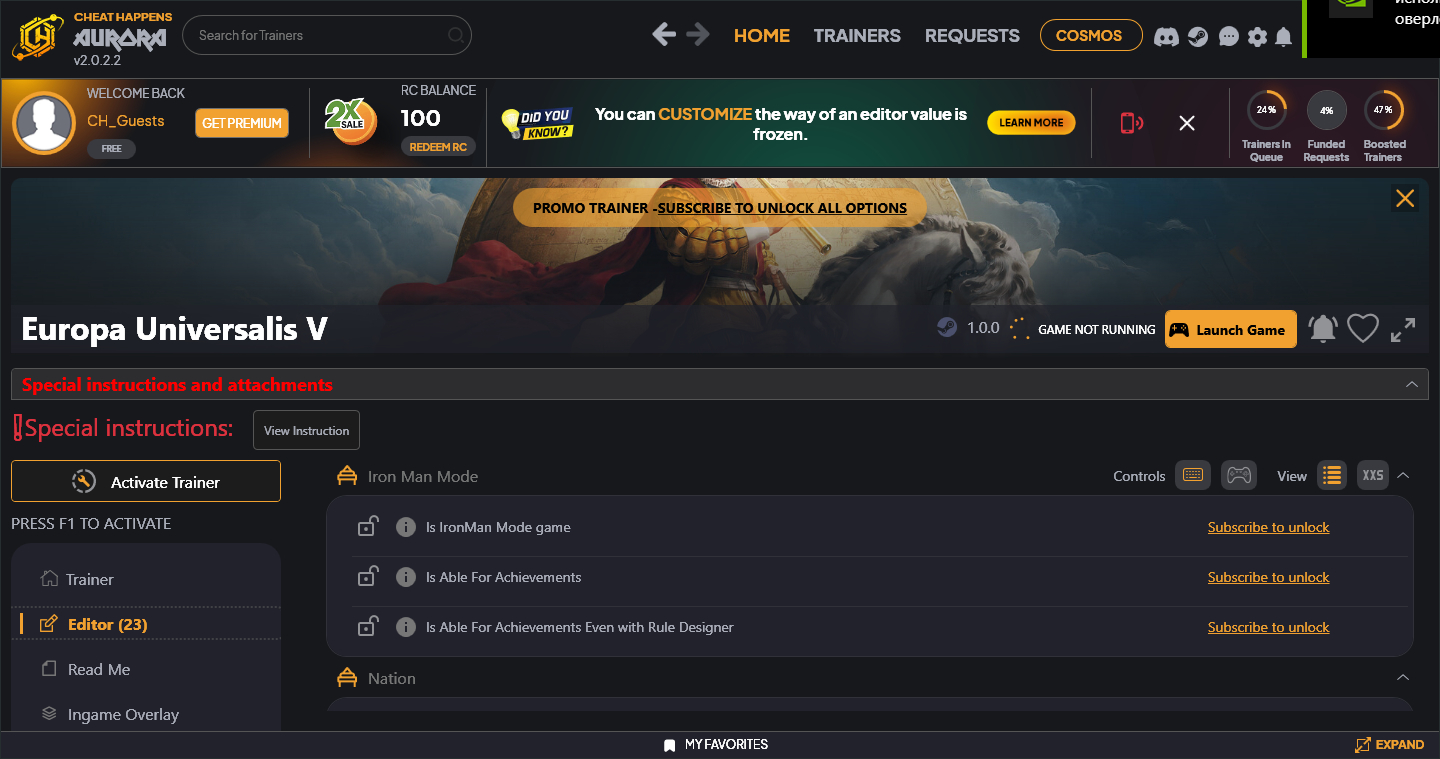Similar Trainers Europa Universalis 5 Trainer +28 v1.0.0 (Cheat Happens):