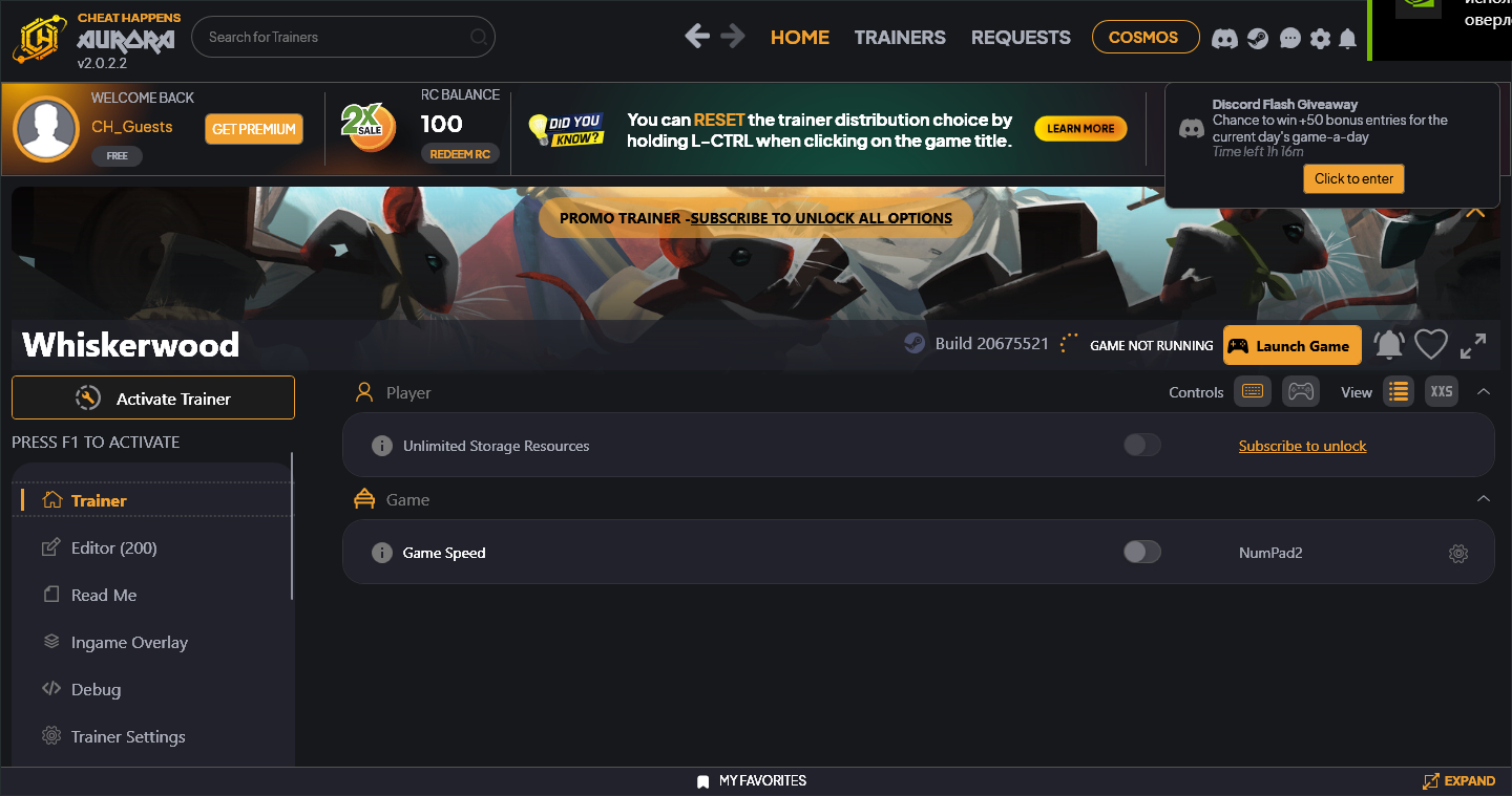Similar Trainers Whiskerwood Trainer +102 v20707012 (Cheat Happens):