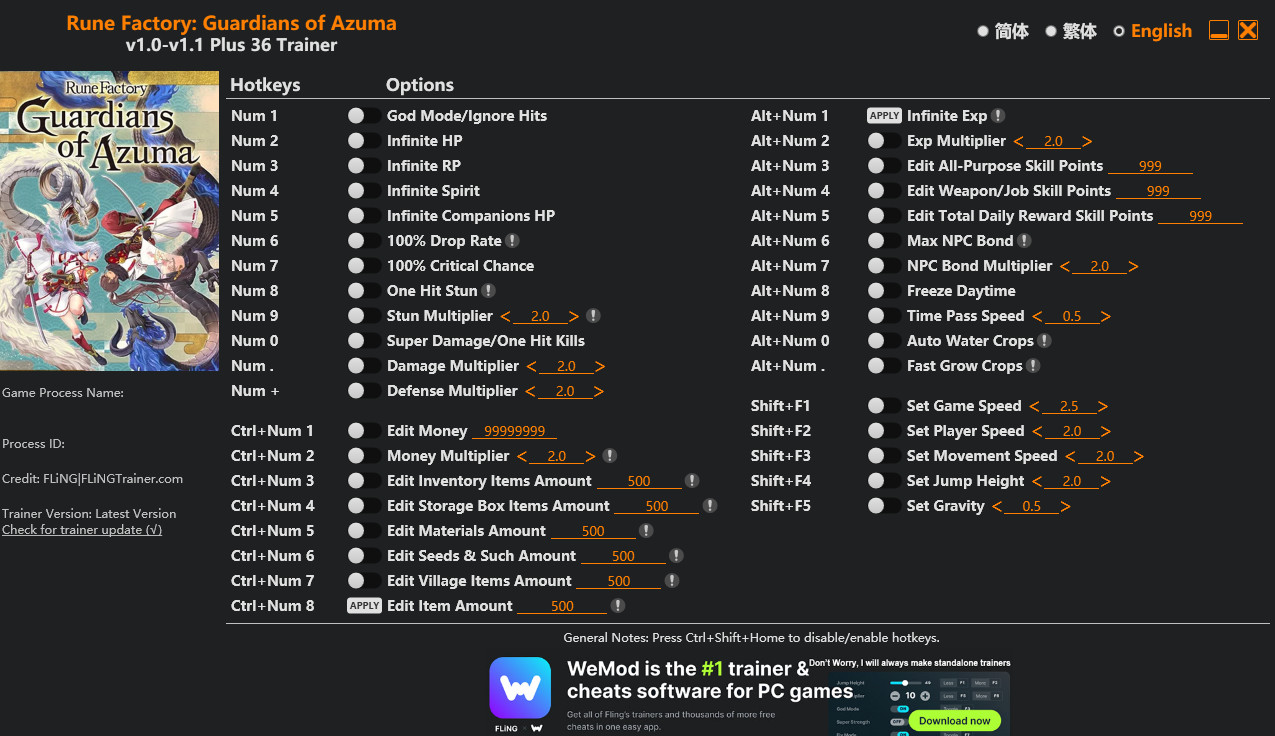 Similar Trainers Rune Factory: Guardians of Azuma Trainer +36 v2025.10.29 {FLiNG}: