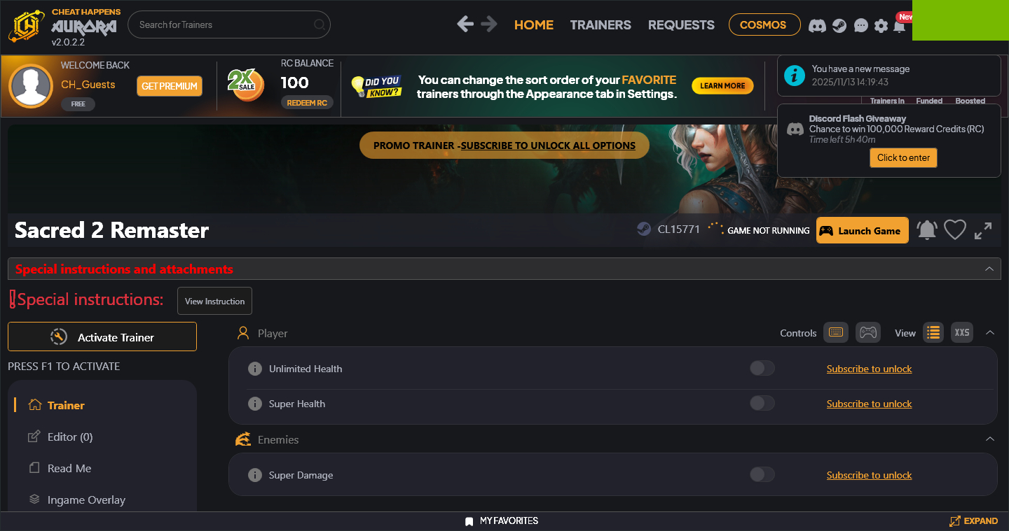 Similar Trainers Sacred 2 Remaster Trainer +10 CL15771 (Cheat Happens):