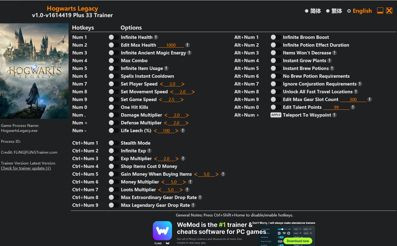 Similar Trainers Hogwarts Legacy Trainer +33 v1614419 {FLiNG}: