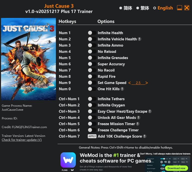 Similar Trainers Just Cause 3 Trainer +17 v2025.12.17 {FLiNG}: