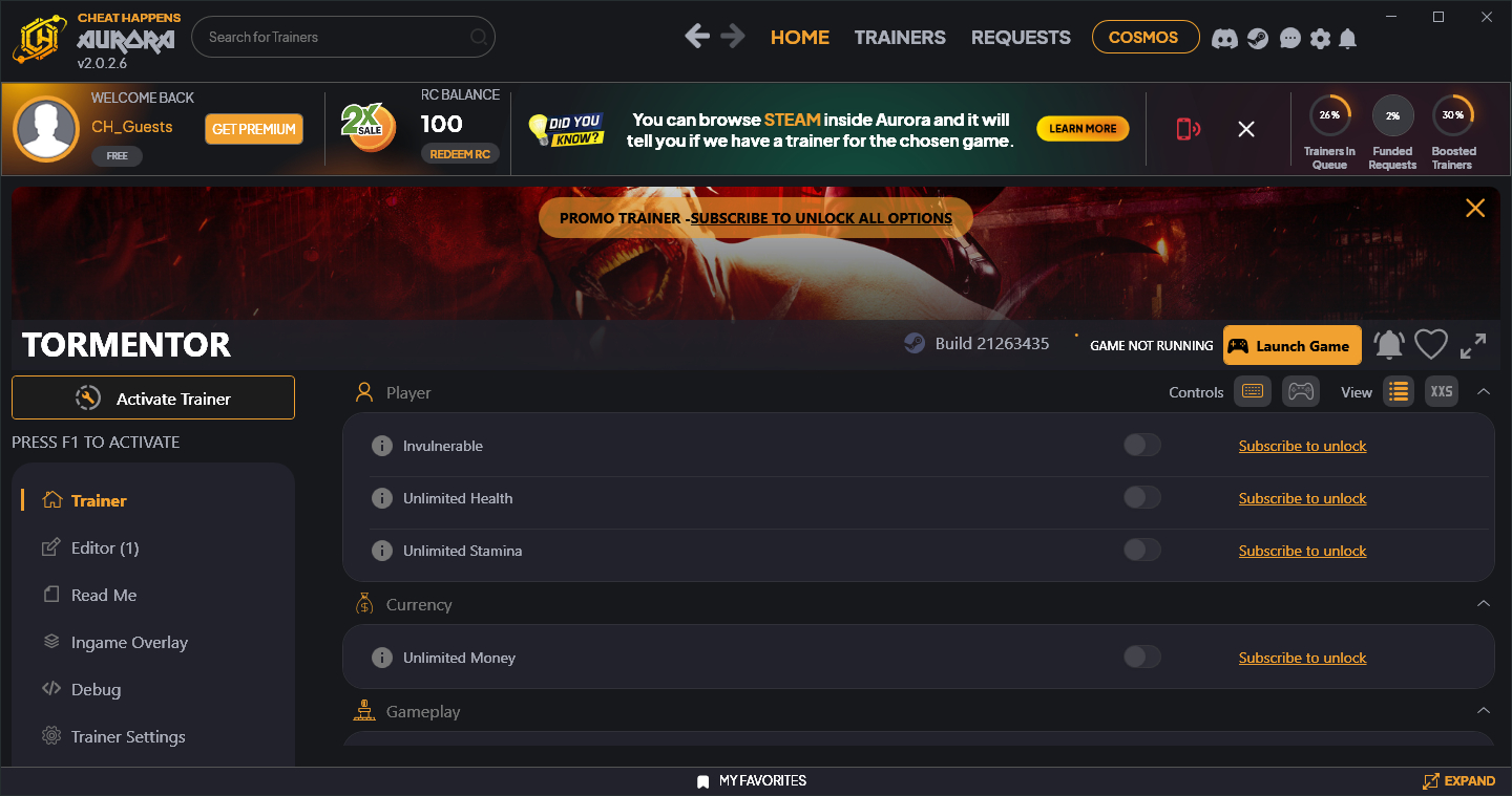 Similar Trainers Tormentor Trainer +22 v21263435 (Cheat Happens):