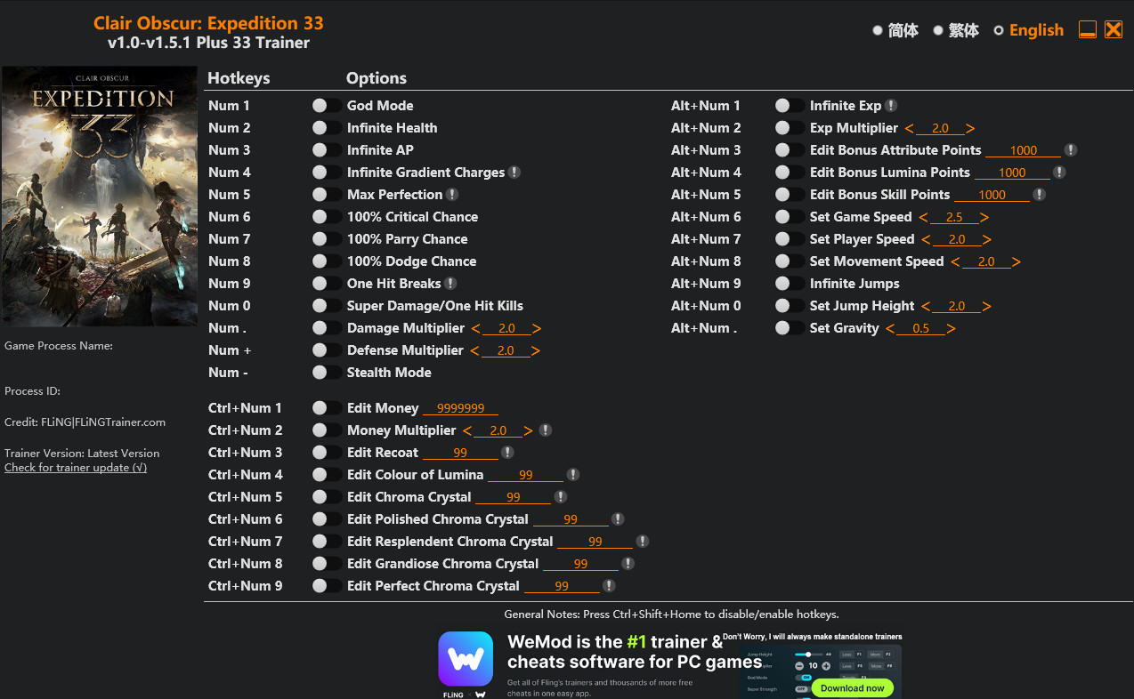 Similar Trainers Clair Obscur: Expedition 33 Trainer +33 v1.5.1{FLiNG}:
