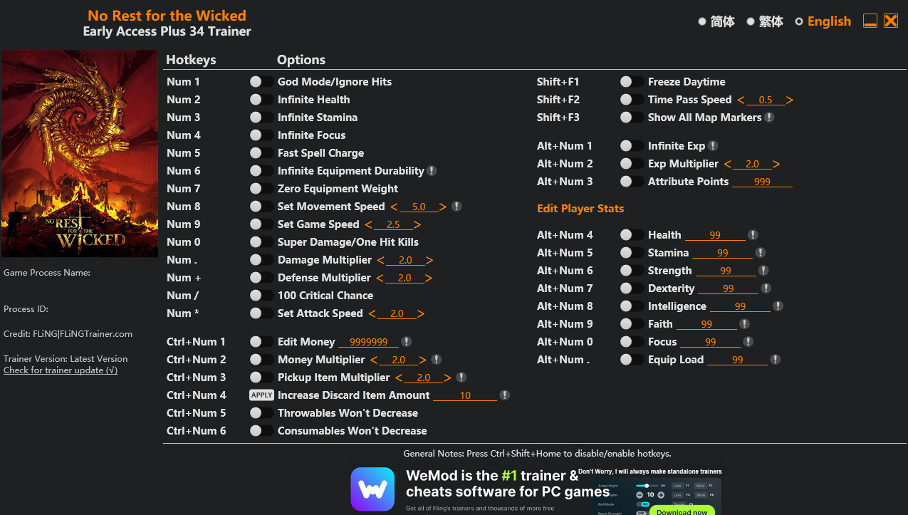 Similar Trainers No Rest for the Wicked Trainer +34 v2026.01.25 {FLiNG}: