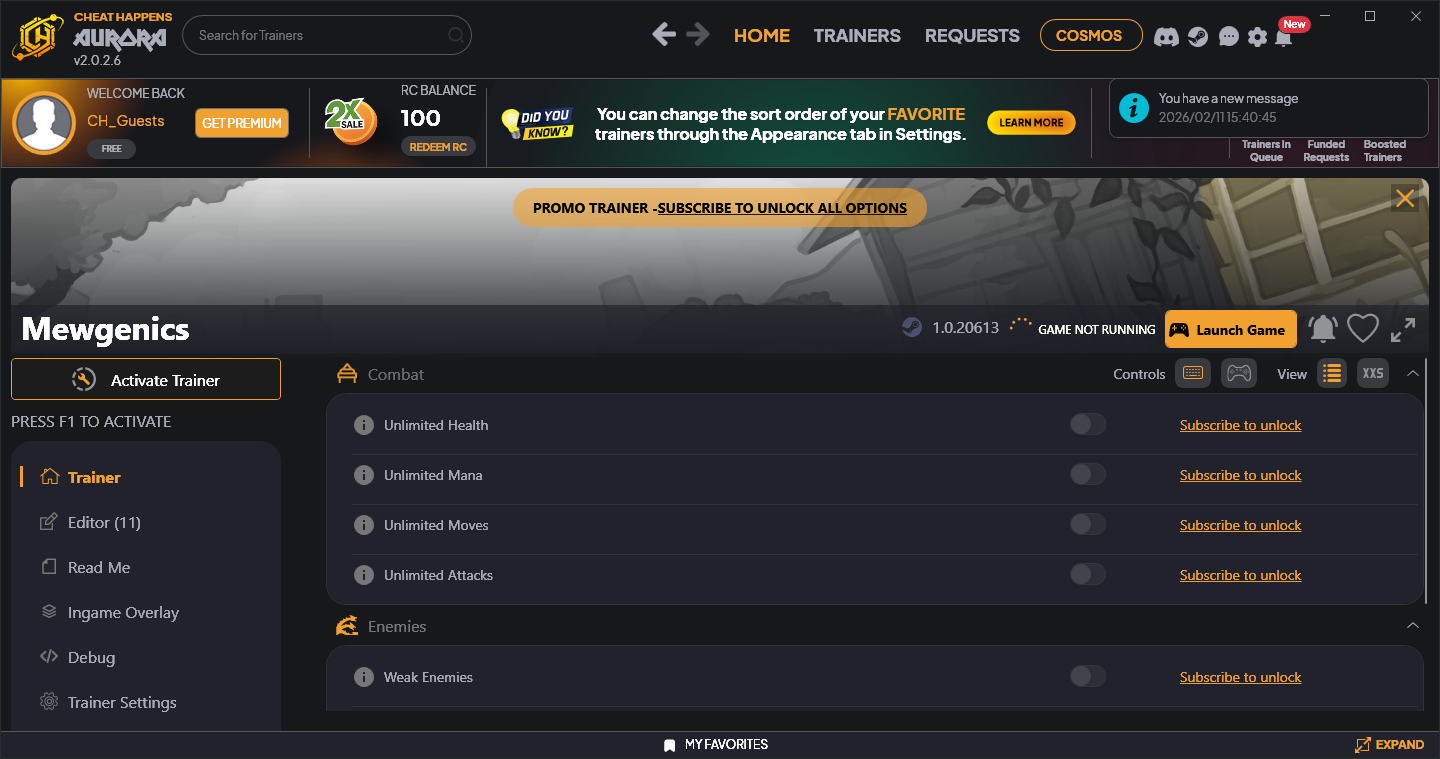 Similar Trainers Mewgenics Trainer +18 v1.0.20613 (Cheat Happens):