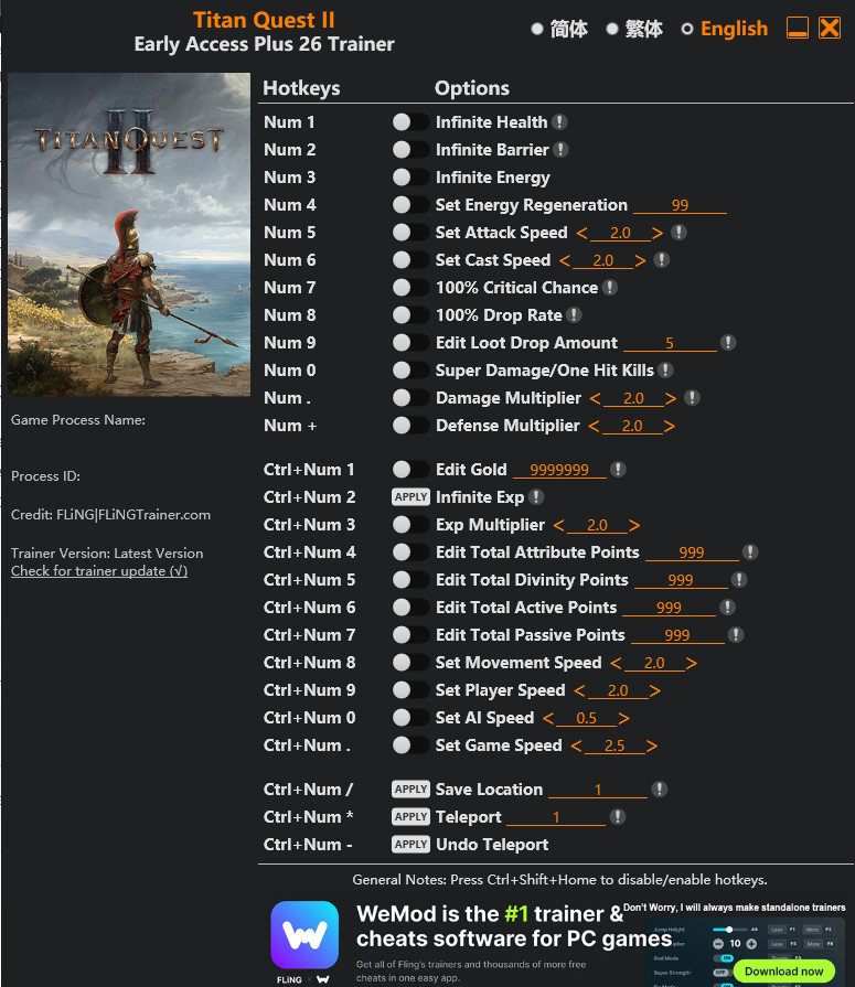 Similar Trainers Titan Quest II Trainer +26 v2026.02.15 {FLiNG}: