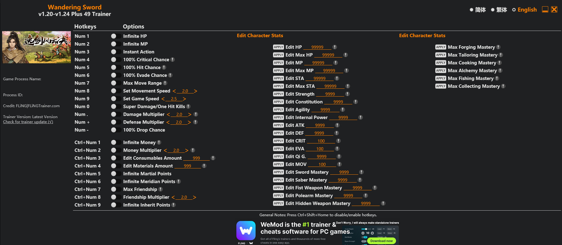 download trainer for Wandering Sword