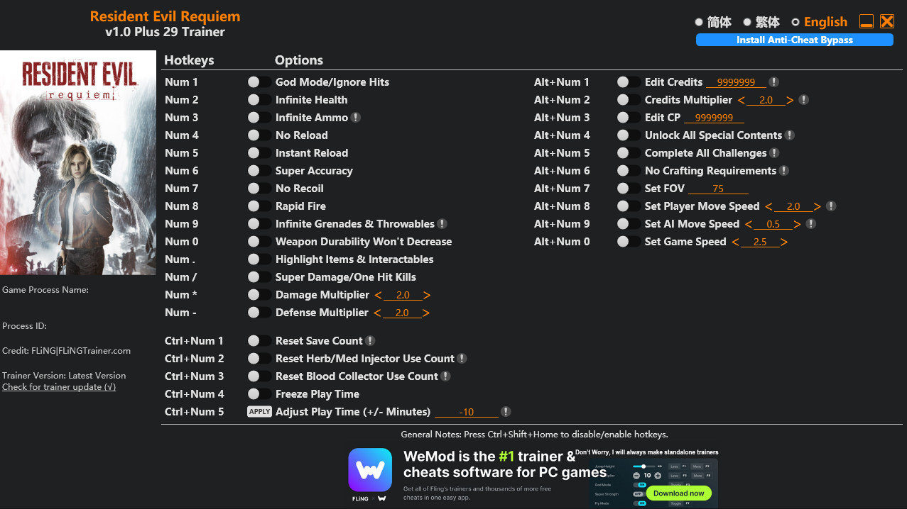 Similar Trainers Resident Evil Requiem Trainer +29 v1.0 {FLiNG}: