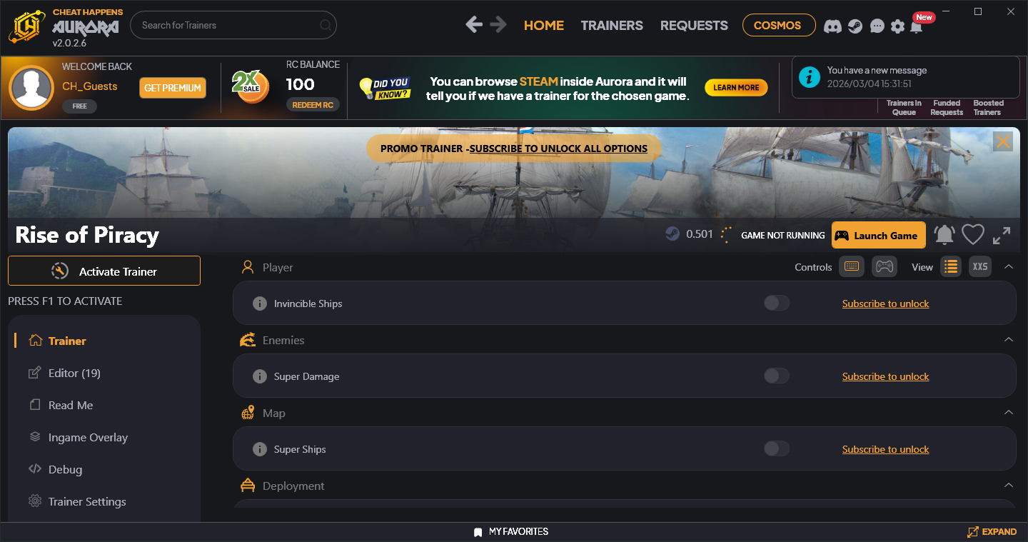 Similar Trainers Rise of Piracy Trainer +19 v0.501 (Cheat Happens):