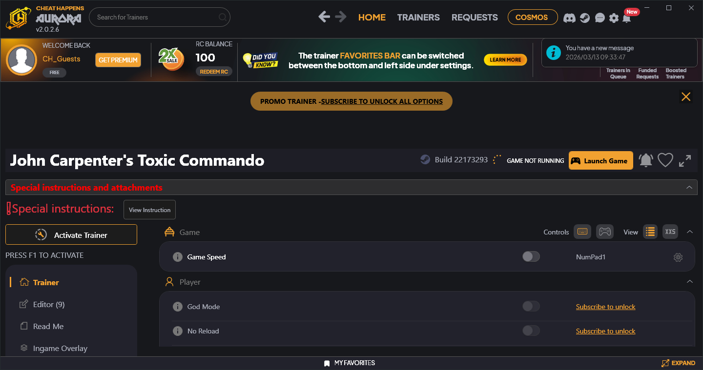 Similar Trainers John Carpenter´s Toxic Commando Trainer +15 v22173293 (Cheat Happens):