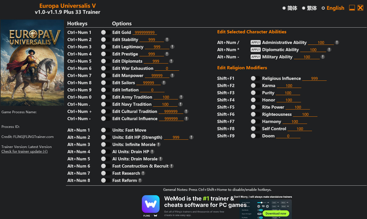 Similar Trainers Europa Universalis V Trainer +33 v1.1.9 {FLiNG}: