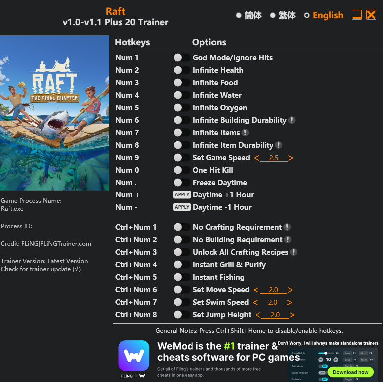 Similar Trainers Raft Trainer +20 v1.0 {FLiNG}: