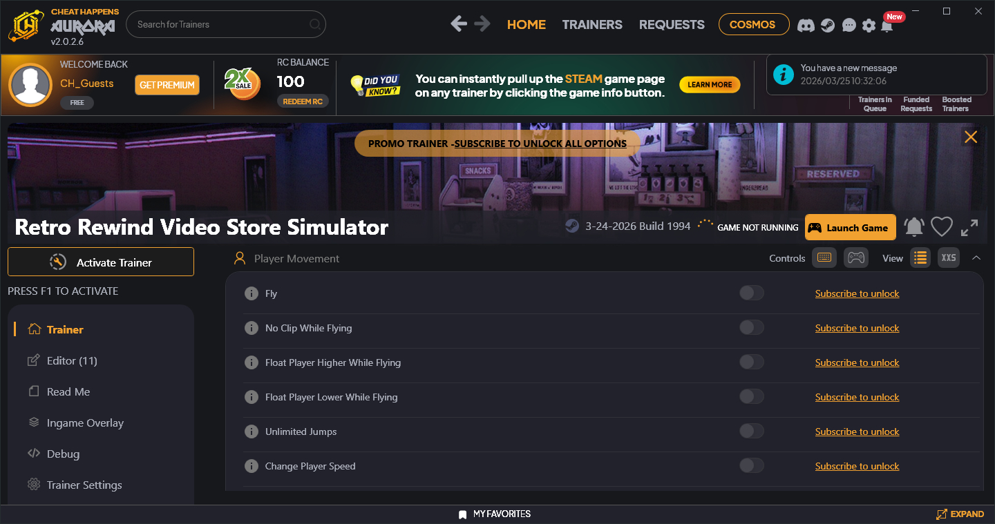 Similar Trainers Retro Rewind - Video Store Simulator Trainer +37 Build 1994 (Cheat Happens):