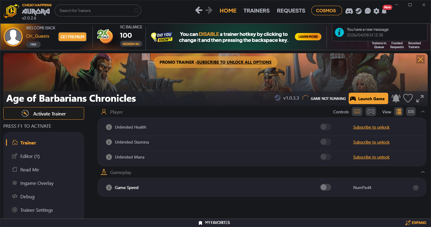 Similar Trainers Age of Barbarians Chronicles Trainer +5 v1.0.3.3 (Cheat Happens):