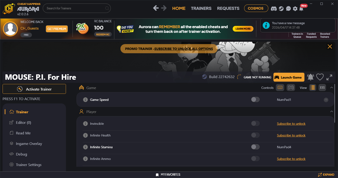 Similar Trainers MOUSE: P.I. For Hire Trainer +13 v22742632 (Cheat Happens):
