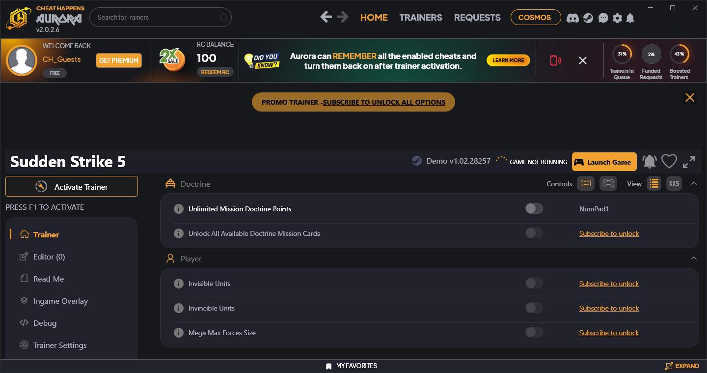 Similar Trainers Sudden Strike 5 Trainer +12 v1.02.28257 (Cheat Happens):